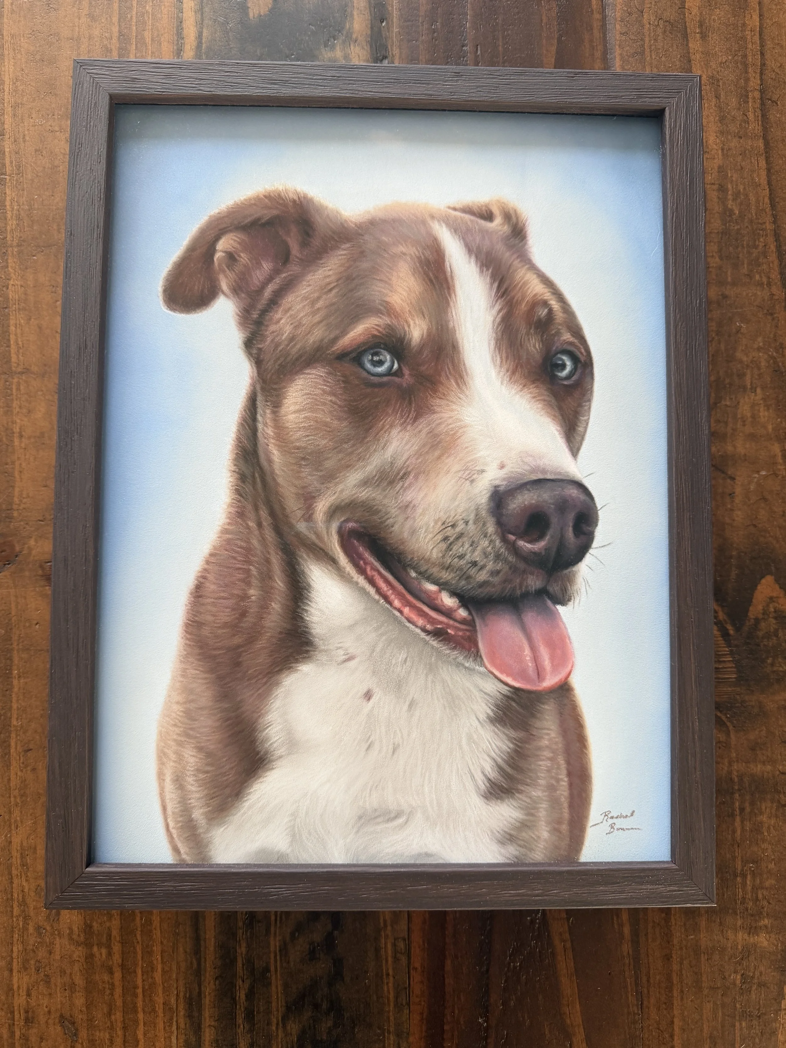“Rachel is such a talented artist! The attention she put into our dogs portrait was so impressive! Capturing every quirk and detail perfectly, we couldn’t have imagined it better. The perfect keep sake for our puppy.”